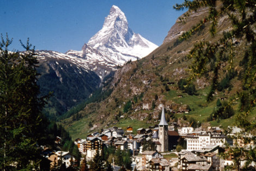 瑞士阿爾卑斯山的壯麗峰群(包括風景如畫的馬特洪峰),有如磁鐵般吸引滑雪客和健行愛好者前來。這些山峰高度從1000公尺到4000公尺以上不等,盤據在五分之三的瑞士國土上。多不勝數的冰河、景致如畫的河谷和壯麗的高山湖泊都為此區的視覺饗宴增添更多光彩。。馬特洪峰Matterhorn