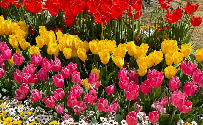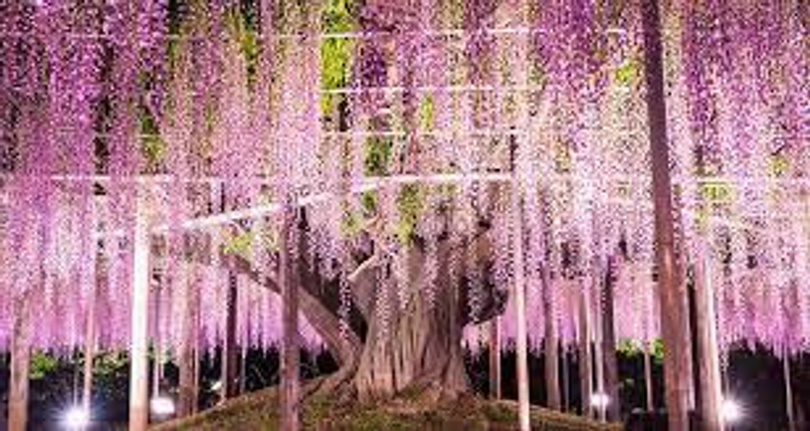 春季的足利花卉公園十分熱鬧,除了有定番的櫻花之外,還有相當浪漫的玫瑰園、鬱金香花田,杜鵑、石楠花、鐵線蓮、珍珠繡線菊(雪柳),生氣蓬勃的園內景色令人目不暇給。春末夏初的4、5月份則是藤花季節,也是賞花人潮高峰期。