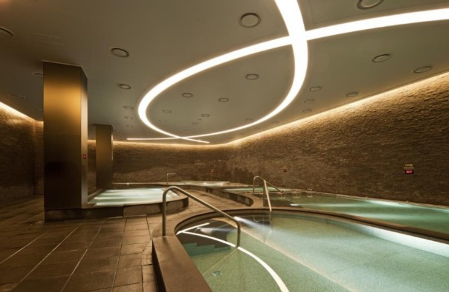 &#12539;扁柏木汗蒸幕:整個汗蒸幕室散發出扁柏樹的芬多精,並於室內放映出森林的影像,令人如置身大自然一般,身心都能得到充分放鬆。