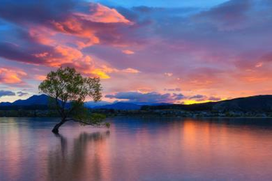 瓦納卡是紐西蘭南島著名的湖濱小鎮,坐落在群山環繞的瓦納卡湖畔,風景寧靜秀麗,散發著悠閒氛圍,是深受旅人喜愛的度假地。湖中那棵孤獨生長的「Wanaka Tree」是拍照打卡的經典地標,被譽為世界上最上鏡的樹之一,四季呈現不同風貌,象徵堅韌與希望,是來到瓦納卡不可錯過的美景。