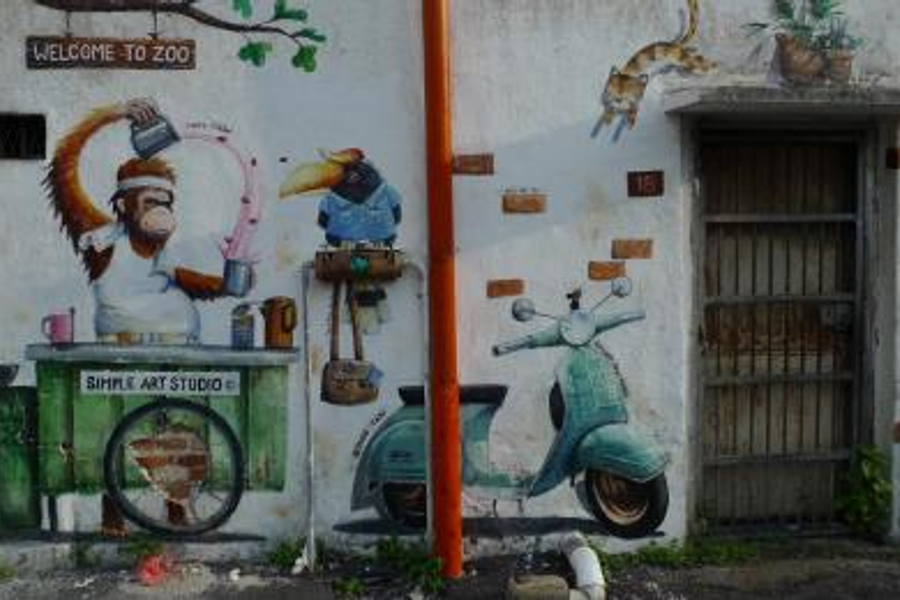 充滿古意的喬治市大街小巷都遍布著壁畫,這是由立陶宛藝術家為了2012年喬治市節慶而創作的街頭壁畫系列;其中較有名的是「單車姊弟」、「追風少年」、「漁船小孩」、「機車上上的男孩」等,透過更生動手法讓壁畫更真實,帶領遊客融入場景。喬治市每個獨具特色的壁畫不僅為這座城市的百年老街注入新生命,也使《喬治市魔鏡》成為旅遊熱度依舊不減的景點。