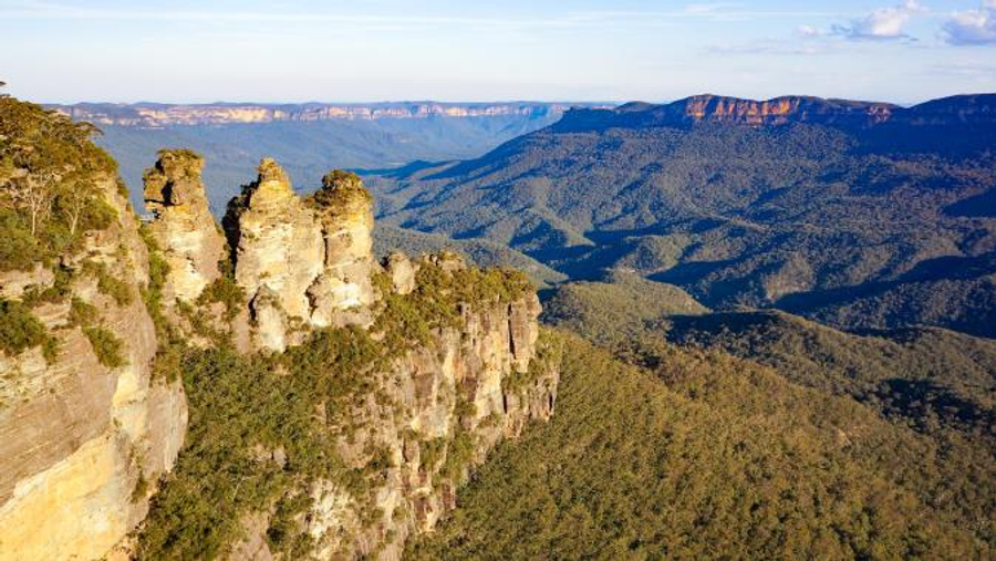藍山國家公園是澳洲最具代表性的世界自然遺產之一,擁有壯麗的峽谷、原始雨林、藍霧籠罩的山巒與豐富的原住民文化。其中最具代表性的地標為三姊妹岩,三座高聳的砂岩石柱矗立在傑米遜峽谷之上,因原住民傳說而得名,象徵勇氣與守護,兼具壯觀景致與文化意涵。旅客可於回音角觀景台(Echo Point Lookout)一覽其全貌,感受震撼氣勢。