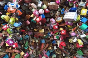 南山雖然僅高265公尺,但由於地處首爾中心位置,在山頂可清楚俯瞰周圍的美麗景致,是市民喜歡的休閒場所,而位於山頂的首爾塔更是首爾的象徵。南山公園 ~ 愛情鎖-南山N首爾塔上的鐵絲網,本來是為了保護到南山遊玩的市民安全而設置,但不知道從什麼時候開始,鐵絲網上開始出現一、兩個鎖頭;鎖頭上寫著人名、愛情告白”我愛你”…並且畫上一顆愛心,而到現在已經有好幾萬個愛情鎖,還成為韓國代表性的愛情景點。