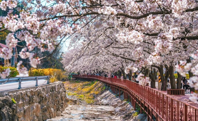 ◎賞櫻秘境~位於首爾近郊【伊甸園櫻花路】整條櫻花路總長約1.2公里.沿著河道在櫻花樹底下漫步真的浪漫度破表