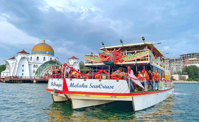 搭乘麻六甲最大最新旅遊遊艇,航行於繁忙的麻六甲海峽,展開一場融合歷史、人文與海景的精彩巡航。沿著鄭和下西洋航線前行,遠眺孕婦島自然景致,欣賞海上清真寺與夕陽晚霞交織的夢幻畫面。途經葡萄牙村、紅屋廣場與葡萄牙戰艦遺跡,感受多元殖民文化交會風華。幸運時還可遇見海豚現身,為旅程增添驚喜與感動。