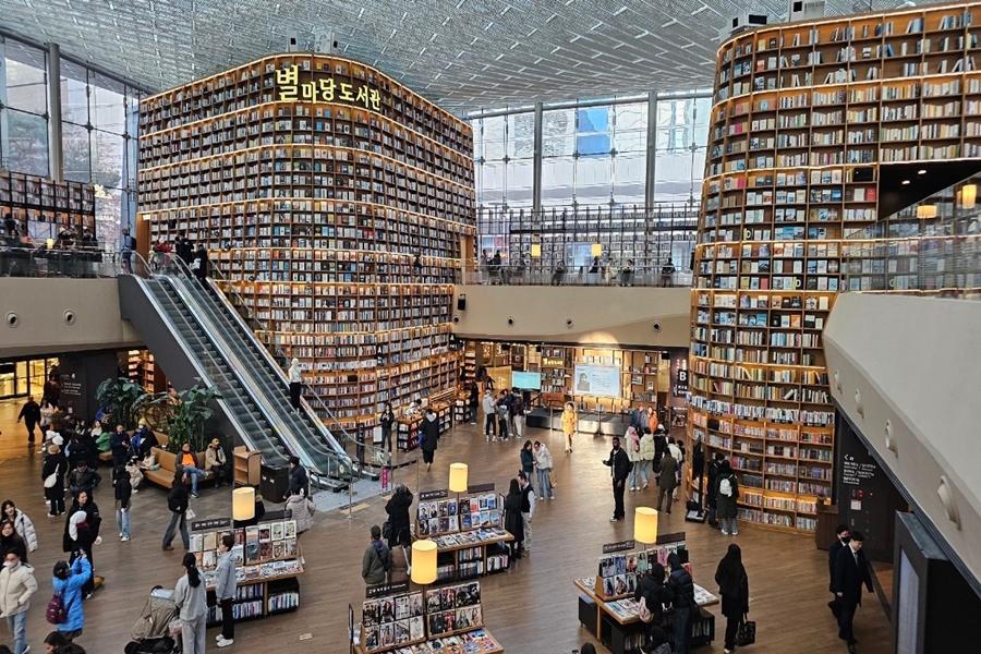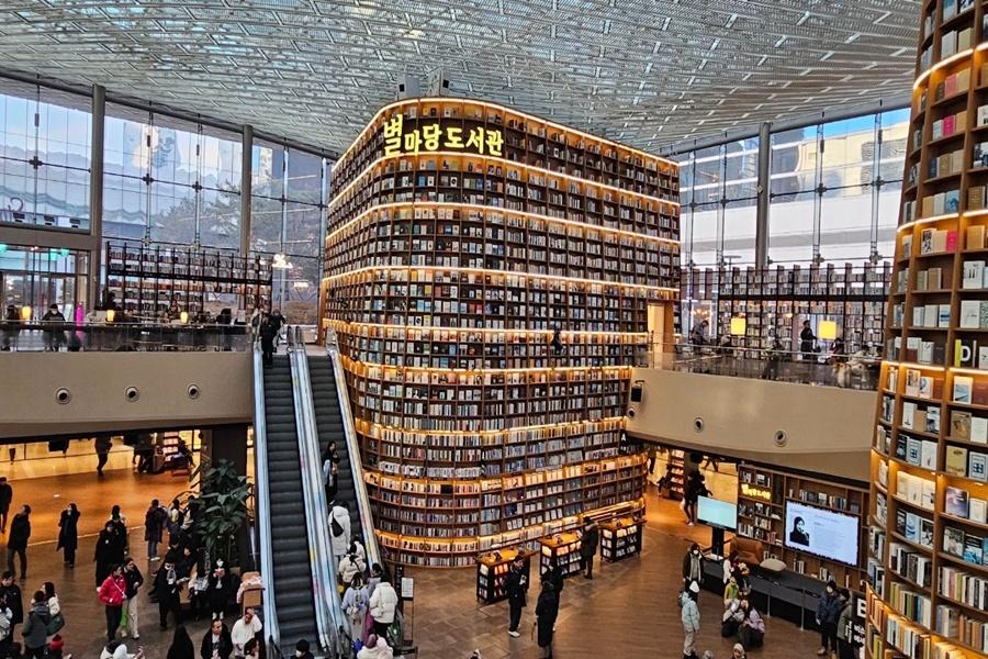 首爾IG爆紅打卡景點~【COEX星空圖書館】設計簡潔時尚、環境優美,總面積達 2,800 平方公尺,共收藏多達5萬餘本的書籍與雜誌,全部都是免費借閱,也是所有人都可使用的開放式圖書空間。