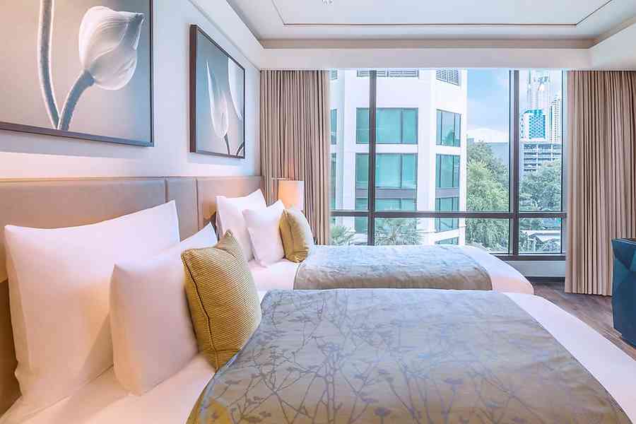 酒店401間豪華客房和套房均有現代化室內設計,獨特的泰國風情元素,其中許多客房有私人陽臺,您可盡情鳥瞰鬱鬱蔥蔥的花園和酒店游泳池。