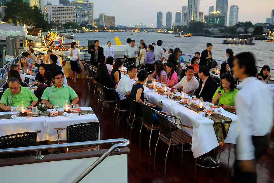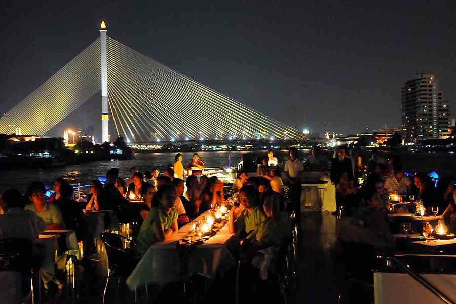 搭乘昭披耶河上豪華時尚的璀璨奢華明珠號,享受自助晚餐盛宴、現場演唱、泰式舞蹈表演與奢華露天噴泉。璀璨明珠號曾出現在電影《湄公河行動》,是唯一擁有電梯的三層樓新船,你能像是走進電影場景般的感受時尚新潮的曼谷夜遊!