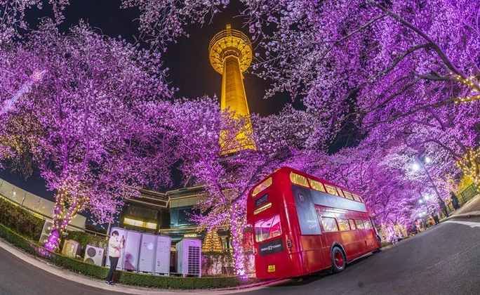 ,白天賞櫻外,慶典結合櫻花季與燈節夜間櫻花加上大邱地標83塔(不含電梯卷) 以及獨特裝置藝術融為一體的夢幻世界。