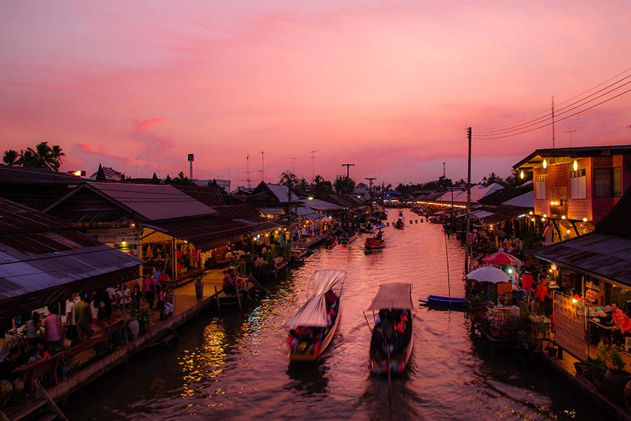 這裏是唯一在泰國政府保存下來的傳統水上市場,就有許多人自近郊划著舢舨到水上市場。市場內人來人往好不熱鬧,生意人熱絡的招呼消費者,使消費者有賓至如歸的親切感。