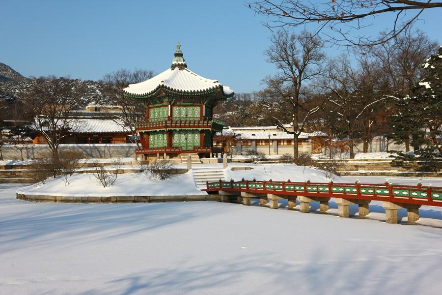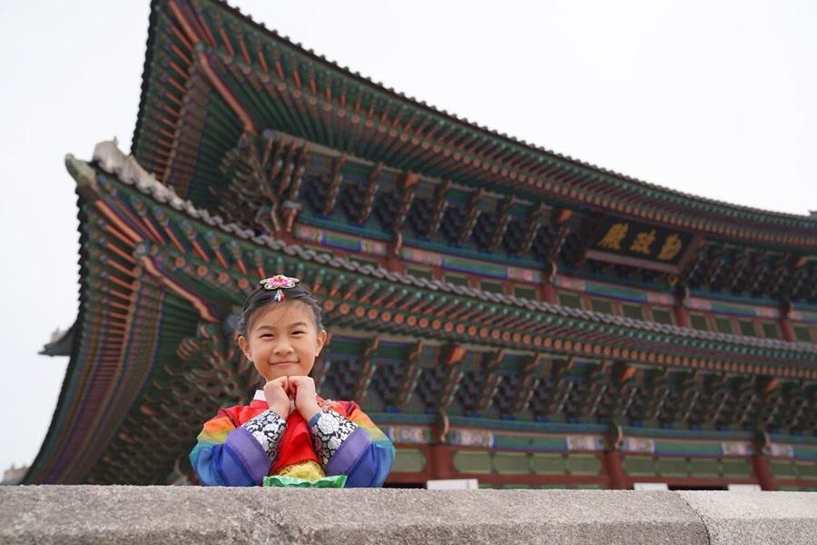 參觀始建於1395年的李朝時代的皇宮景福宮,共佔地12萬6千坪,內有舉行君王即位大典及文武百官朝禮儀式的勤政殿,雄偉而富麗的殿閣,烘托出極盡榮華富貴的氣派,迎春花與杜鵑花在春天綻放,四處飄香,祥瑞之喜鵲飛翔於宮內,那份寧謐令人心曠神怡,有如置身於世外桃源。