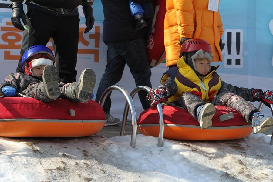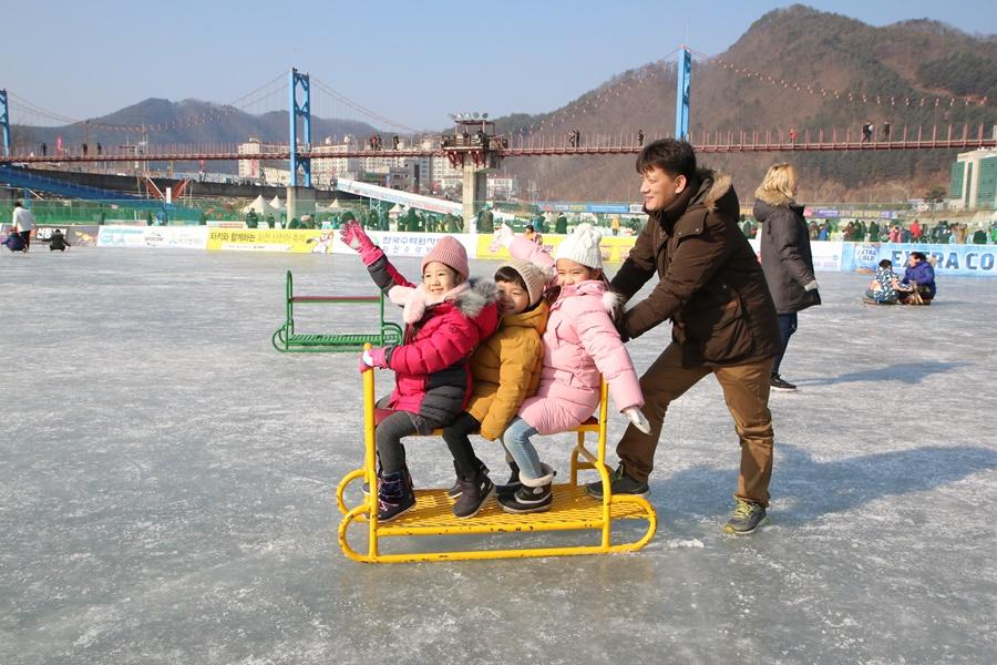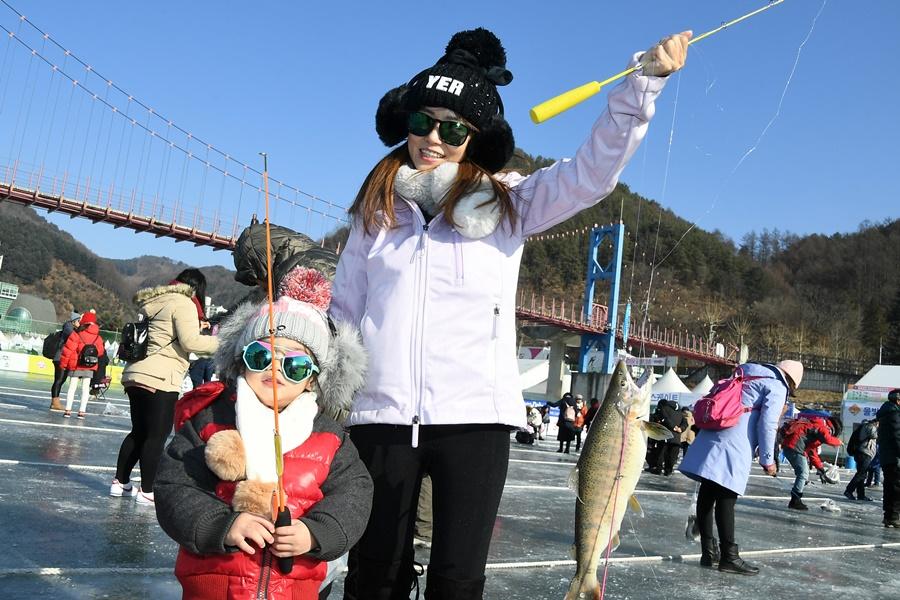 『山鱒魚體驗活動』:為了〔冰釣山鱒魚〕,在冬季的華川川上凍結40cm以上的厚冰層上拿著所有準備好的垂釣用品進入冰釣區,選定好冰釣窟窿釣竿等器具擺放好,掛上魚餌後就等山鱒魚上勾囉!而捕捉到的山鱒魚可在燒烤區或生食區品嚐它的鮮美嗞味。