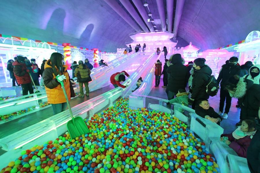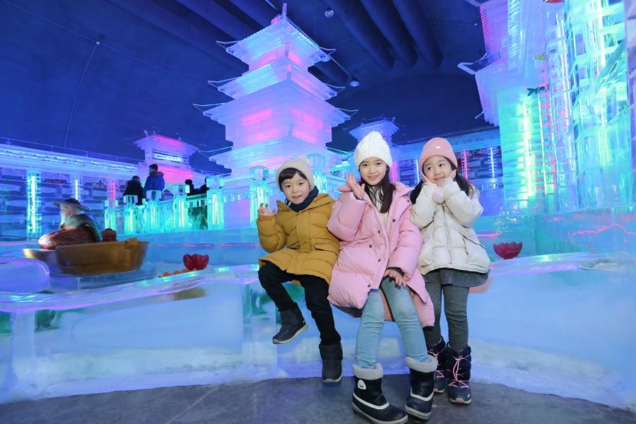 山鱒魚冰雕節和冬季國際冰雕節組織相連接,聘請了中國哈爾濱冰雕藝術節委員會的專家們,在冰雕節期間始創了韓國最大規模的冰雕展示。(圖片來源:華川郡提供)