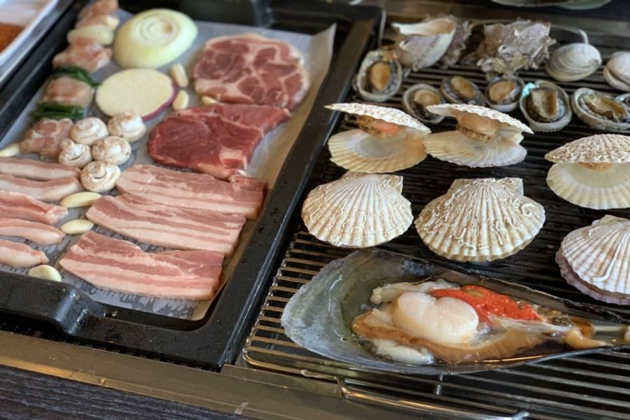 ►韓國特色美食~海鮮蒸鍋(鮑魚.蝦.各式貝類)+刀切麵、鐵板炒雞排+金玉炒飯、什錦香菇火鍋+季節小菜、韓式烤肉無限放題