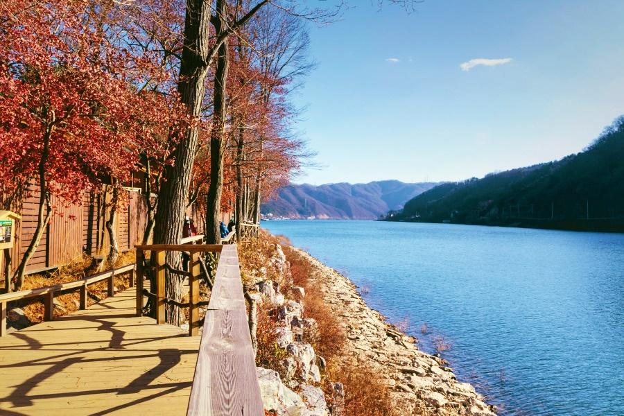 位於北漢江上游,是面積14萬坪小島。也是著名《韓劇冬季戀歌拍攝地》,搭乘渡輪前往,這裡寬闊的草地和楸樹林道相得益彰、相映成趣。穿過劇中廣受戀人們歡迎的“愛情小路”的杉木林道,是這對戀人騎自行車的地方,在並列的楸樹林道中,他們一起玩“踩影子”的遊戲。早晨或者黃昏時,從枝葉中滲進霞光讓人心靈感覺平靜舒暢;春、夏、秋、冬中更都有不同景色,春天的櫻花碇放的美景、夏天的陽光映照著樹影的美感、秋楓紅葉步滿整個杉木林道的美麗、冬季片地雪白景色更為浪漫…讓您在四季之中留下最不同的回憶。