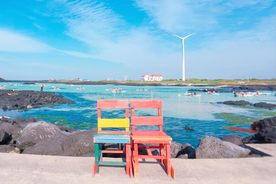 享受蔚藍海岸的海風、喝著咖啡欣賞海景,近期被喻為濟州島最美咖啡廳之一哦!