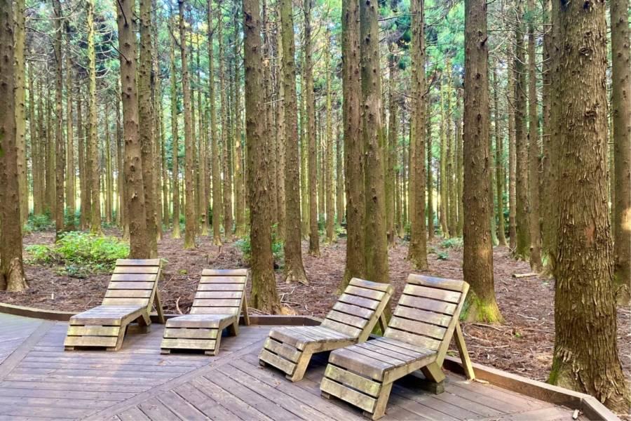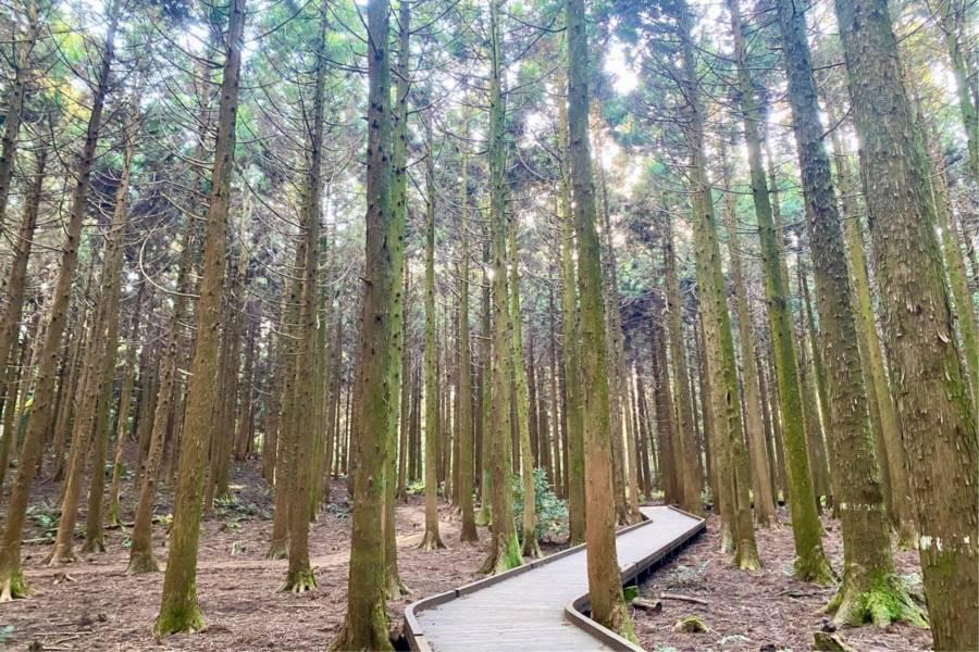 網美必拍景點,濟州島版忘憂森林!徒步路為環山平地徒步路線,並不是登頂漢拏山的路線,環漢拿山徒步路被指定為韓國國家級林蔭道。徒步路一共八段路線,最推薦第七段思連伊林蔭道。步道長達約10公里的柳杉林小徑,步道旁呈現濟州島最原始森林風貌,像是走進濟州島森林的中心。非常適合漫步,在這裡可以自在的放鬆身心,吸收取之不盡的芬多精和負離子,一邊深呼吸漫步一邊感受大自然療癒心靈的氣息。