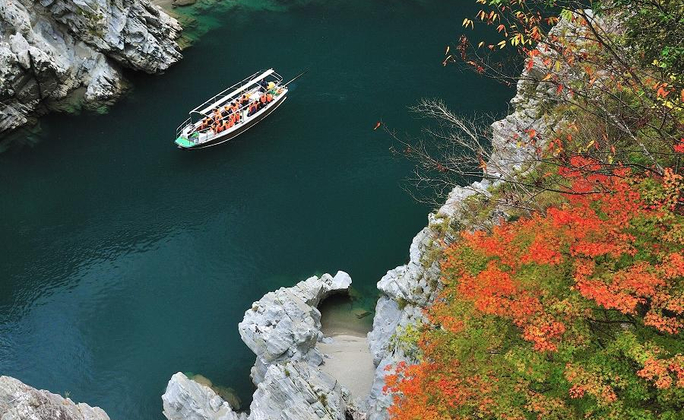 【日本第一激流.大步危峽谷遊覽船】價值¥1500吉野川貫穿四國山脈經長年歲月的洗禮,切割出令人讚嘆不已的峽谷自然奇景。