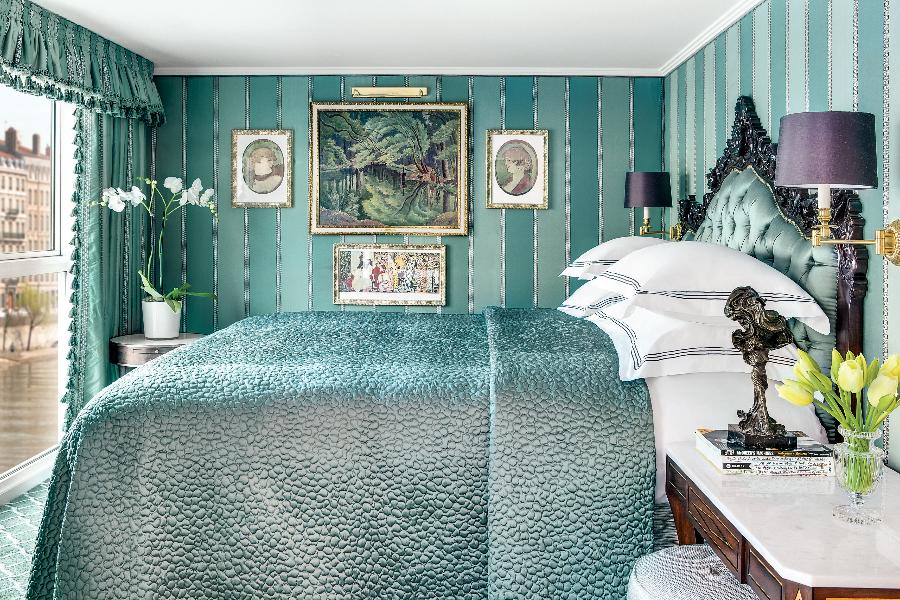 豪華法式河景客房內裝含有:英格蘭手工製作的Savoir 名牌床、內置衣櫃、吹風機、保險箱、獨立空調