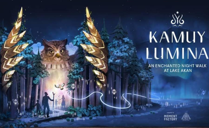 ★阿寒湖光之幻想森林,這不是普通的夜行,這是一場關於幻想的浪漫旅程,結合北海道愛奴族人傳統文化及神話故事,在夜晚神秘的森林舞台中拉開表演的序幕。