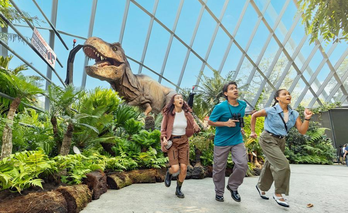 【濱海灣花園、天空樹、(花穹、侏羅紀)】2025年夏天,濱海灣花園將舉辦全新大型主題展「侏羅紀再現 Jurassic Adventure」,結合園區現有的自然景觀與科技元素,為旅客帶來穿越時空的體驗。