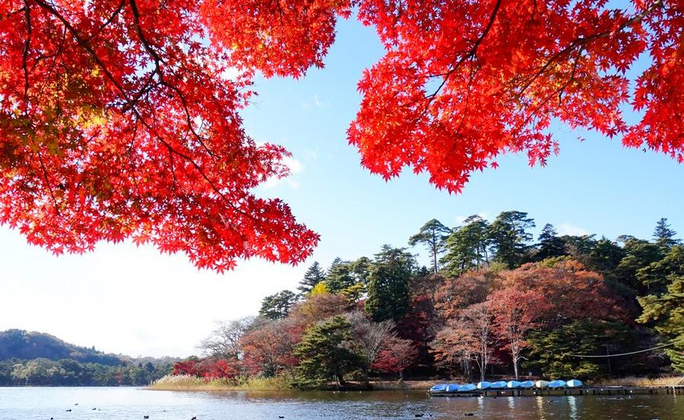 【白河南湖公園】位於宮城縣白石市,建於1820年,由白石藩主片倉小十郎邦憲創建,作為開放給庶民休憩的公共庭園,開創了日本最早期的「民眾式公園」先河。園區依山傍水,環繞南湖池打造優美山水風景,並由藩主精心設計出「南湖十七景」,將四季景致詩意化為景點名稱。尤其到了秋季,漫山楓紅、銀杏黃葉倒映在湖面,形成東北地區難得的賞楓美景,漫步於湖畔步道,不僅能享受自然賞楓之美,更能感受這座百年公園背後濃厚的文化底蘊。