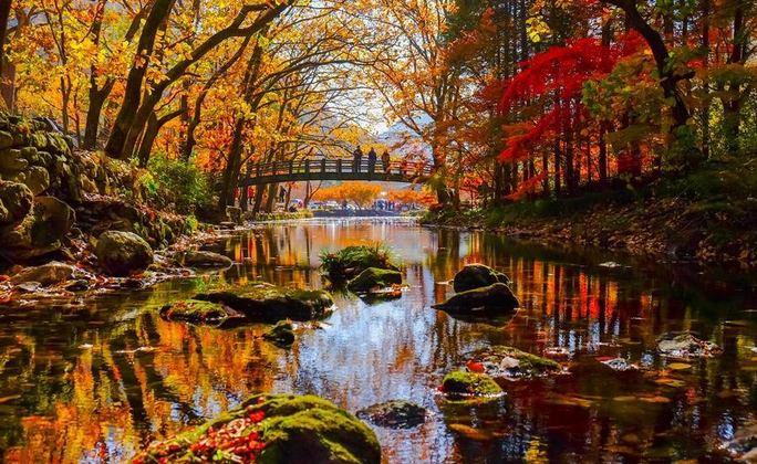 【內藏山國立公園】每逢秋天,滿山散發鮮紅光的楓葉染上天際,讓前來內藏山的遊客在心中留下深刻的記憶,因此又稱作湖南的金剛。