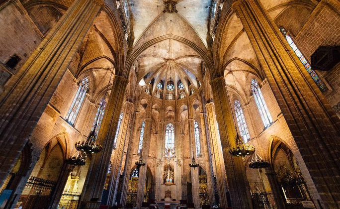 聖家堂,由建築奇才安東尼·高第設計,這座壯麗的建築是全球唯一尚未完工就被列入世界遺產的建築物。教堂最終將擁有18座尖塔,象徵耶穌、聖母、福音書作者與使徒,其中最高的耶穌塔預計高達170公尺,成為巴塞隆納最高建築。許多人形容走進聖家堂內部就像走入森林,高聳的石柱宛如森林中的大樹,彩繪玻璃在陽光照射下灑落神聖的光影,抬頭望向天空,就像陽光從樹叢中灑落,彷彿置身於大自然中。
