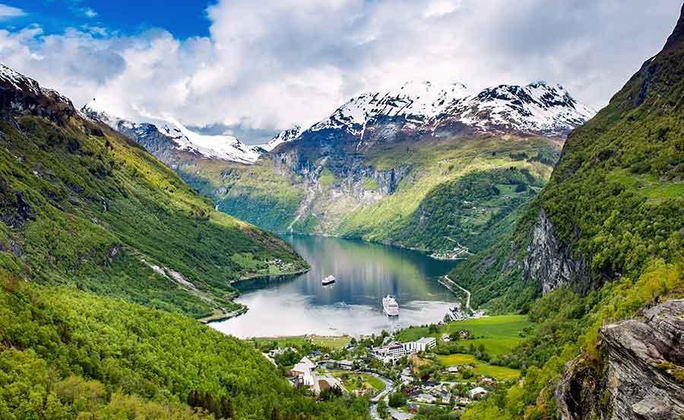 渾然天成的峽灣是挪威三大峽灣中最深且最狹窄,景觀壯闊秀麗,沿途可欣賞著名的景點七姊妹瀑布、新娘頭紗瀑布、勇士石,號稱世界最美麗的峽灣,也是挪威人引以為傲的大自然寶藏