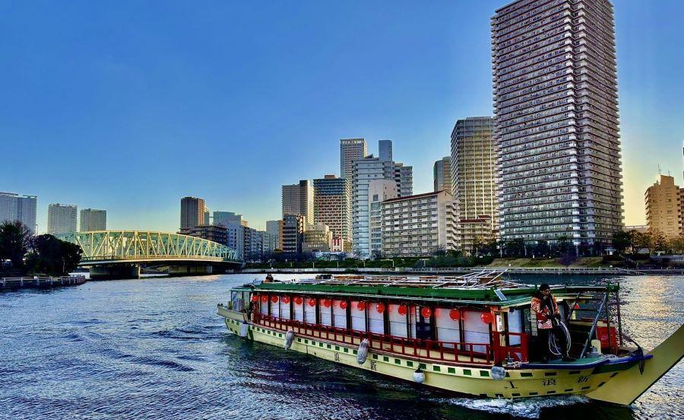 【打卡新點】搭乘江戶風情的「屋形船」¥5000,欣賞熱鬧表演,體驗遨遊東京灣上眺望台場地標、彩虹大橋..等沿途美景。