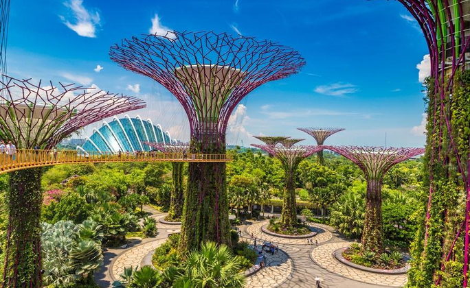 【濱海灣花園、超級天空樹交響樂幻彩燈光秀】這燈光秀通常在傍晚和晚上在超級樹林區域舉行,吸引了許多遊客前來觀賞。