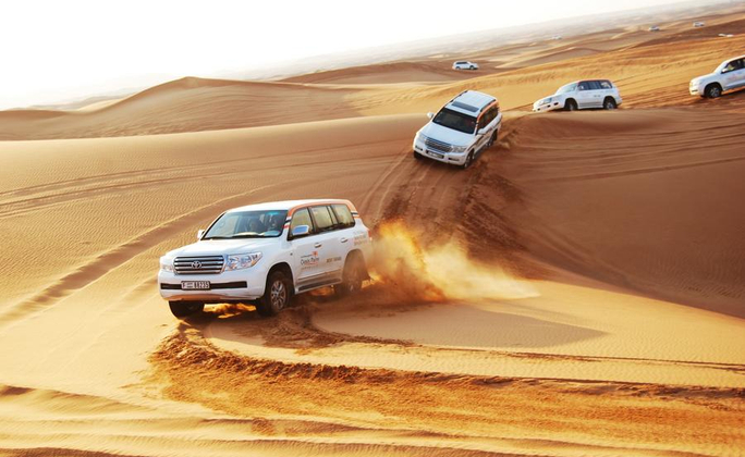 搭乘四輪驅動吉普車穿梭在起伏不定的沙丘上,途中在頂峰停留片刻,遠眺浩瀚寧靜的沙漠,是杜拜旅遊絕不可錯過的特別體驗