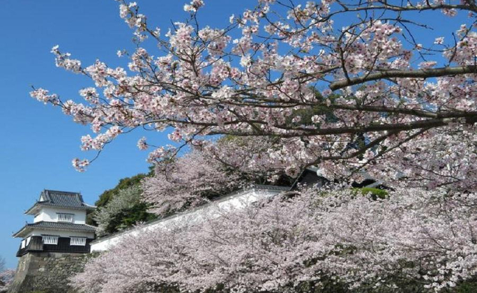 位於福岡縣北九州市中心的小倉城,是被選入「日本櫻花名所百選」的賞櫻勝地。城內與周邊的勝山公園種植約300株染井吉野櫻,每到3月下旬至4月上旬,粉櫻盛開,為古城披上柔美春裝。