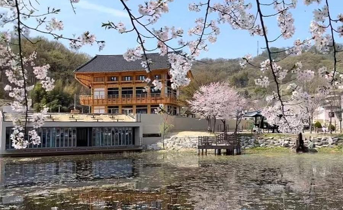 結合韓屋書店與摩登咖啡廳兩種魅力,樹木環繞,瀰漫書香的建築融合了傳統韓屋與現代建築的特色,在咖啡廳平台能欣賞季節賞櫻花、蓮花、周峰水庫全景與農田景觀,感受截然不同的氛圍。