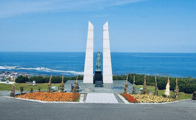 九人乙女之碑:紀念二戰結束前蘇聯軍隊進攻樺太,9名在樺太真岡城郵局內的女接線生,面對蘇聯 軍隊,透過電話留下這段遺言“各位,這是最後的留言了。再見,永別了...”