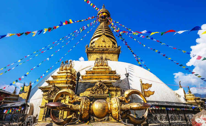 全球最大的圓佛塔,白色巨大的圓形塔身,氣勢不凡,給人以佛教寬大為懷的意韻。宏大的白色覆缽上有個方形塔,四面畫有巨大的佛眼,喻意佛法無邊。聯合國世界文化遺產。