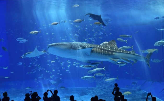 【海洋博公園】【沖繩美之海水族館】以”與琉球海洋有約”為主題,有3個主題水族箱:珊瑚礁之旅、黑潮之旅及深海之旅可以讓你全覽沖繩沿海的水中生物,其中最棒的東亞第一大水族箱─黑潮之旅。可以看到細長不超過手掌的條紋蝦魚和毛煙管魚、可長大至14公尺長的7公尺鯨鯊、世界最大的軟骨魚--鬼蝠魟、有著黑人厚唇的曲紋唇魚,也可以看到像貌醜惡的石頭魚、章魚、蝦子等等350種奇形怪狀、大大小小的海中生物,令人嘖嘖稱奇,這種滋味就等你來試試囉!另有【海牛館】、【海龜館】可參觀,並欣賞可愛的【海豚劇場】,絕對讓您在此渡過難忘的歡樂時光!