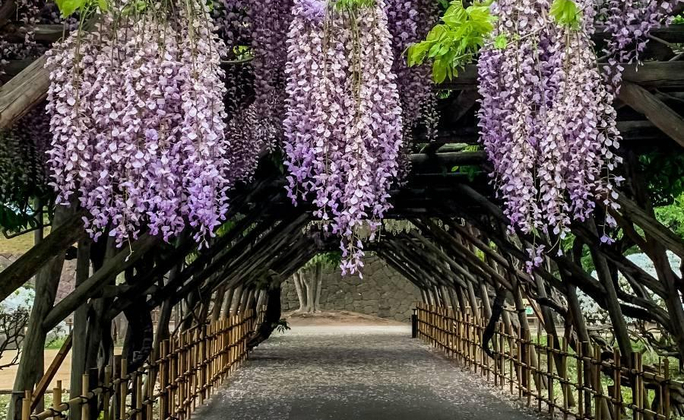 每年盛開時會形成長約30公尺的紫藤花隧道,穿過隧道便可進入公園,彷彿是引領旅人進入春季北海道的夢幻入口,園內除了有紫藤花,還有杜鵑花、睡蓮等花朵陸續綻放。