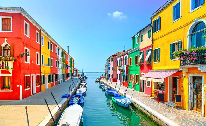 彩色島Burano,也稱為布拉諾島、蕾絲島,這座威尼斯潟湖上的夢幻小島曾被評為全球必去小島之一。彩色島的房子顏色千變萬化,像是打翻了調色盤一樣~染上了各種鮮豔的顏色。