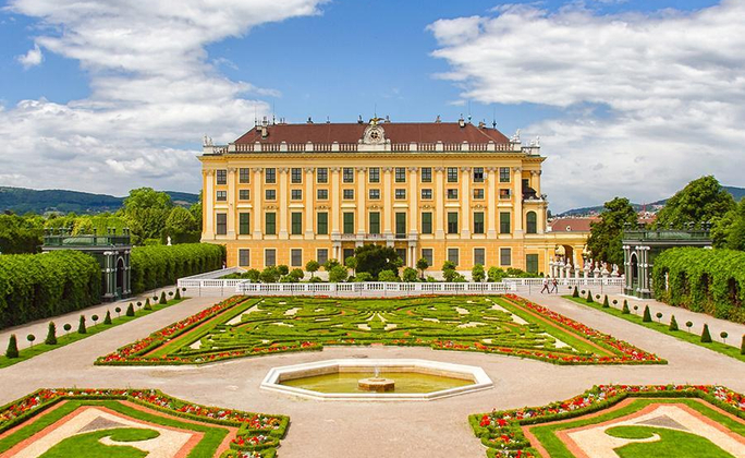 哈布斯王朝代表、見證其王朝興衰的熊布朗宮是歐洲三大宮殿之一,因這有一道美麗泉水而得名,又稱『麗泉宮』,曾為哈布斯堡皇室夏宮,深受瑪麗亞特瑞莎喜愛,整體設計極其和諧,長方形的外觀建築,足以代表奧地利巴洛克式建築風格,裝潢華麗無比,是號稱『百萬宮室』的建築。