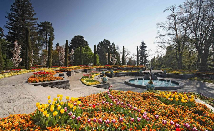 有花之島美名的美瑙島(Mainau),位於德瑞奧三國邊境的波登湖上,四週湖水環繞,園區內的花卉以及花圃的設計會隨季節有不同的變化,義大利階梯花園、玫瑰花園、香草園、蝴蝶館…多樣化的花園造景,讓人流連忘返。四季皆有看點,春季(3-5月)是鬱金香、水仙、蘭花盛開;夏季(5-7月)玫瑰、繡球花、芙蓉輪番登場;秋季(8-9月)大理花正美;秋冬季葉色與冬季燈飾也別具風情,全年無休都有不同花卉展現獨特魅力。