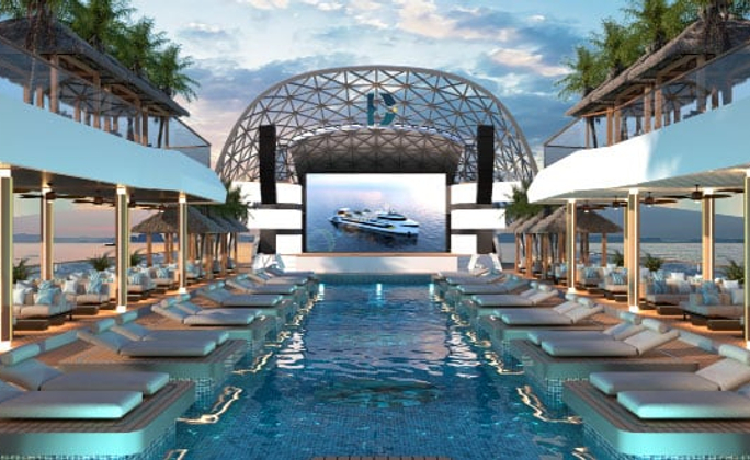 2025年10月首航,奢華夢幻的海豚號遊輪,總噸位達1500噸的精品級遊輪,可容納超過600位貴賓,是下龍灣首艘以「娛樂與感官體驗」為核心設計的豪華遊輪。下龍意即「降下神龍」的意思,源自於地方的神話故事,其範圍非常廣泛,面積約有4000平方公里,其中散佈超過一千六百座石林及石筍狀的小島,這些小島亦有龍島、猴島、龜島、蟾蜍島、鬥雞島......等別名;海面上突起的奇形怪狀天然岩石雕刻,相當生動,而無數個岩洞更創造出一處令人陶醉不已的永恆世界,乘船繞行其中,體驗大自然的鬼斧神工之妙。