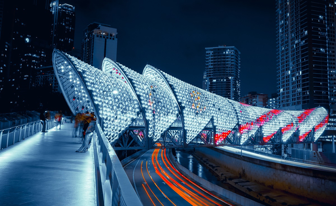註:僅安排取景拍照留念,不安排入內百貨公司逛街。 【Saloma Link彩色行人天橋(下車參觀)】耗資高達3100萬令吉,全長370公尺,行人天橋的建築設計是採用“九重葛”(Sirih Junjung)的概念。人行天橋的屋頂部分,由4100盞LED燈打造而成,晚間會隨不同節日變換顏色,尤其是夜間看起來更具吸引力,不妨傍晚到訪,等待等入夜後的亮燈,這樣就可以體驗兩種日夜不同感覺。主要是銜接甘榜峇魯(Kampung Baru)與吉隆坡KLCC廣場的行人天橋,僅7分鐘即可到達。成為吉隆坡最新的打卡熱點!