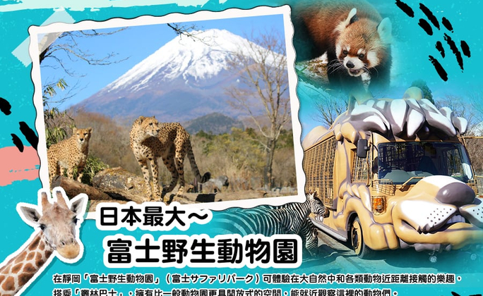 園區內有70種約900隻動物,有高人氣大型肉食性動物(獅子、老虎、獵豹等)、草食性動物(大象、長頸鹿、犀牛)及小型動物(斑馬、袋鼠、水豚等),大多以自然野生的方式來餵食,並將他們的生活環境與習性,重現在動物園中。叢林巴士:非常受大人及小朋友的喜愛,我們在乘坐巴士的過程中,可以餵食獅子,熊,大象等野生動物,餵食時的緊張興奮感,大人們也能感受到兒童般的歡樂童趣。在巴士中透過視野開闊的窗口,更能近距離感受野生動物的魅力,同時觀察動物的生態習性。※ 叢林巴士如遇團體預約滿席、日本假日,將改以遊覽車進入遊園參觀、但無提供餵食,並另退叢林巴士料金每人日幣1000元。※ 園方提供互動餵食的食材,設定為3~5人共用一盒,懇請留意配合,謝謝。 【PREMIUM OUTLET 御殿場】