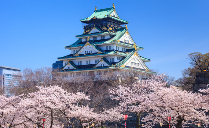 ★【大阪城公園(不上天守閣)】:大阪城由豐臣秀吉於公元1583年在石山本願寺遺址上初建,至今已有400多年歷史,為當時日本第一名城,也是日本前所未有的最大城堡。現存的大阪城為1931年由民間集資重建,城中央聳立著大阪城的主體建築天守閣巍峨宏偉,鑲銅鍍金,十分壯觀。城牆四周護城河附近,有風景秀麗的庭園和亭台樓閣,奇花異卉,滿目青翠,充滿詩情畫意。城內櫻花門頗為著名,當年大阪城屢屢遭遇火災,僅這一道全部用巨石砌成的櫻花門屹立無恙,成為目前僅存的遺蹟。