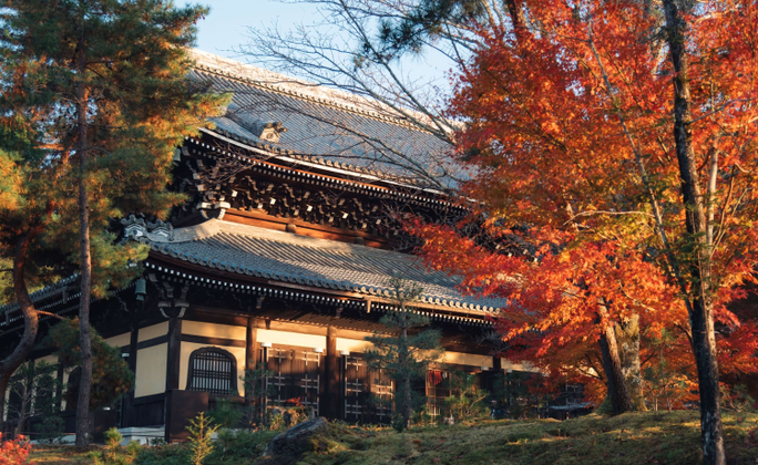 ★【南襌寺(賞楓)】:是京都名剎之一,在日本佛教界地位極高,也深具樸素簡約的日本之美,不添加任何華麗色彩的冷調景致,正是南禪寺的風格所在。方丈庭園是一處優雅的枯山水派作品,庭園內白砂象徵海洋岩石和花草象徵人間天堂。寺境內的水路閣是一座紅磚砌造的拱形橋,這座歐式橋樑是當年建設琵琶湖疏水道通過南禪寺時所興建的水路閣。在歌舞伎當中著名的石川五右衛門著名的台詞當中稱讚這裡的紅楓說:「絕景啊!絕景!」在天授庵的池泉回遊式庭院當中可以觀賞到不同的美麗角度。