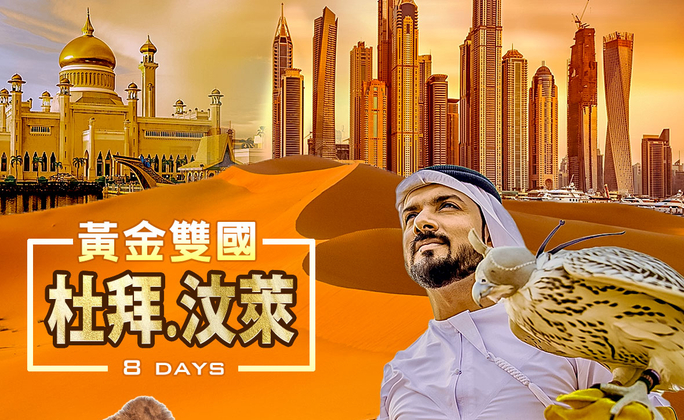 【未來博物館Museum of the Future】是一座極具未來感的創新建築,被譽為「世界上最美的建築之一」。其獨特的環形結構,外牆刻有阿拉伯書法,象徵著杜拜對創新的承諾。這座博物館不僅是視覺上的奇觀,更是探索人類未來無限可能性的平台。博物館內部透過先進的技術和沉浸式體驗,展示了從氣候變遷、太空旅行到生物工程等領域的未來願景。遊客可以體驗到2071年的杜拜,探索太空居住站、體驗療癒綠洲,並透過互動展覽思考科技對人類和地球的影響。未來博物館旨在激發人們對未來的想像,鼓勵創新思維,並為解決全球挑戰提供靈感。它不僅是展示未來的空間,更是塑造未來的對話場域。 【黃金相框Dubai Frame】被譽為「世界上最大的相框」,這座高達150公尺、寬93公尺的巨型結構,外觀閃耀著金色的光芒,象徵著杜拜從過去走向未來的輝煌轉變。建築的設計理念巧妙,一邊框住了「老杜拜」的歷史景觀,如德拉舊城區和杜拜河,而另一邊則框住了「新杜拜」的現代化天際線,包括哈里發塔和豪華高樓群。相框內可以搭乘透明的觀景電梯直達頂部,在玻璃步道上俯瞰這兩種截然不同的城市面貌,感受新舊交織的獨特魅力。杜拜黃金相框不僅是拍照打卡的熱門景點,更是一座展示杜拜發展歷程的紀念碑。 【哈里發塔Burj Khalifa 124層(含門票)】世界第一高樓,斥資15億美金打造的哈里發塔Burj Khalifa,遊客們可搭乘世界最快的電梯,在1分鐘內快速到達位於第 124層樓高的「登峰造極」的觀景台,舉目所見盡是超現代化的摩天大樓,親身體驗這座立地而起、與天爭高的沙漠奇蹟。在天氣好的時候,更可以遠眺80公里遠的美景。 ★推薦自費活動:七星帆船自助午餐(約2小時)Al Iwan(每人美金175元;4~11歲小孩美金100元) 【七星帆船自助午餐(約2小時)】在奢華的七星級帆船酒店,享用多樣化的國際美食與地道的阿拉伯佳餚,在金碧輝煌的殿堂裡,感受頂級的服務與無與倫比的奢華氛圍,體驗尊榮無比的用餐時光。備註:6人以上成行、含接送、用餐時間約2小時、此費用不含酒水。