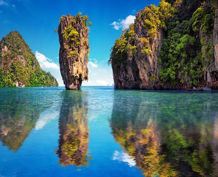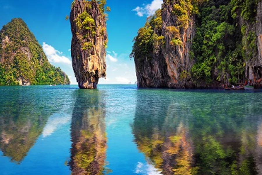 位於泰國南部的攀牙府,1981年被列為海洋國家公園,海中的奇岩,鐘乳石美景,此處風光雄渾壯麗,酷似桂林的山水,被譽為泰國的「小桂林」。景色優美、海水湛藍,常國際電影的拍攝地,是前往普吉島必訪景點之一。