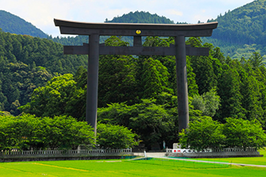大齋原是熊野本宮大社的舊社址,據傳當時境內有五棟十二社的社殿、樓門、神樂殿及能舞台等建築,規模是現在的數倍。就像是為了保護大齋原茂密森林般聳立著,即使在遠處也能望見其令人震懾的姿態。