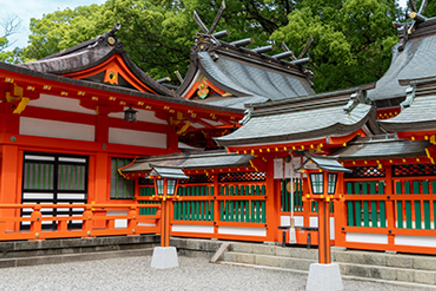 熊野速玉大社於熊野川河口,鮮豔而華麗的朱紅色社殿重現了熊野曼茶羅的世界。古代日本貴族到庶民為求救贖,長途跋涉苦行來到熊野速玉大社,參拜感動之餘如同重生,得到人生重新出發的勇氣。